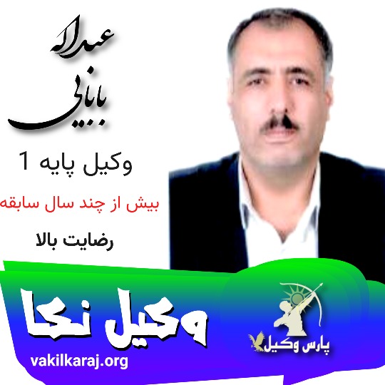 معرفی کوتاه عبداله بابایی وکیل نکا : جناب آقای وکیل به شماره پروانه وکالت 3250 پایه یک در تاریخ ۱۳۸۳/۱۰/۲۸ بیش از 20+ سال سابقه ،جناب آقای عبداله بابائی از میان وکلای شناختهشده و متخصص شهر نکا، دارای سوابق ارزنده در حوزه مشاوره و وکالت حقوقی است.