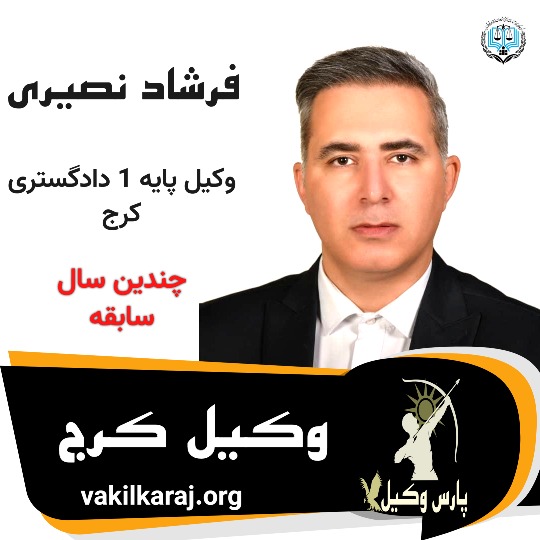 جناب آقای فرشاد نصیری وکیل پایه یک دادگستری _ معرفی کوتاه : جناب آقای وکیل فرشاد نصیری، به شماره پروانه وکالت 76109 عضو مرکز وکلای دادگستری البرز بوده و تا کنون بیش از 1000 پرونده حقوقی را به سرانجام رسانده اند ، سابقه ایشان به بیش از چندین سال میرسد و به عنوان یکی از بهترین وکلا در کرج مشغول کار هستند.