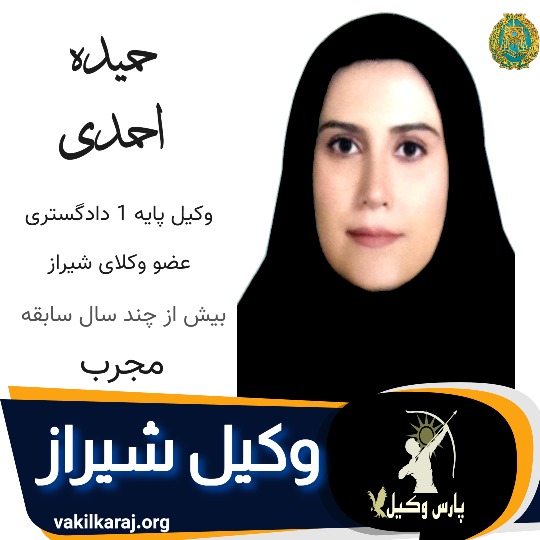 معرفی کوتاه حمیده احمدی وکیل خانواده و طلاق شیراز  : سرکار خانم  وکیل به شماره پروانه وکالت 21902 پایه یک شده در سال 92 با بیش از 12 سال سابقه وکالت، حمیده احمدی وکیل پایه‌یک دادگستری در شیراز، با تمرکز بر دعاوی حقوقی و کیفری شناخته می‌شود. او با اخلاق حرفه‌ای و دقت در پیگیری پرونده‌ها، توانسته است اعتماد موکلان را جلب کند. دفتر او در منطقه فلکه گاز شیراز، محل مراجعه بسیاری از افراد برای دریافت مشاوره حقوقی است.