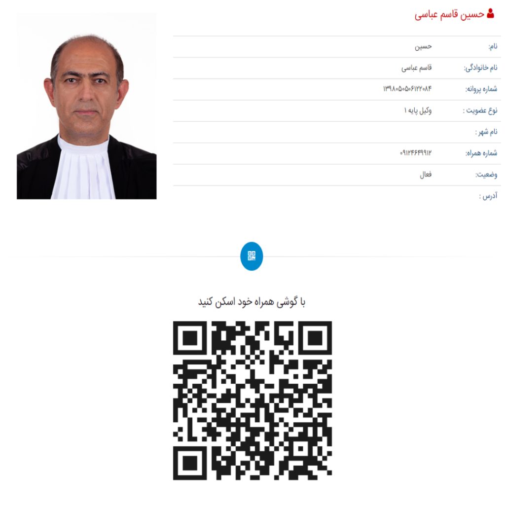 👈در تصویر زیر شماره پروانه وکیل و سایر مشخصات ایشان ذکر شده است ، سایت مرجع پارس وکیل اهراز هویت وکلا را انجام داده است و جای نگرانی نیست👉