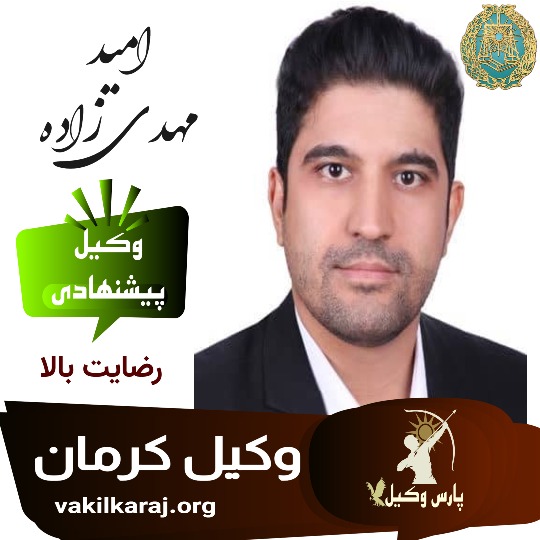معرفی کوتاه امید مهدی زاده وکیل پایه یک کرمان : جناب آقای وکیل مهدی زاده گوهری با بیش از چند سال سابقه وکالت فعال و فشرده با انجام بیش از چندین پرونده حقوقی و کیفری و خانواده موفق به کسب رضایت مردمی بالایی شده اند و در لیست بهترین وکیل کرمان سایت پارس وکیل قرار میگیرند ، آقای وکیل کارشناسی ارشد حقوق به شماره تماس ٠٩١٣١٤٠٣٠٥٢ و آدرس استان کرمان هم اکنون در زمینه های : کلیه دعاوی حقوقی – کیفری مالی – ملکی دعاوی قاچاق کالاو ارز ،موضوع پرونده های دادگاه تعزیرات حکومتی قبول وکالت میکنند.