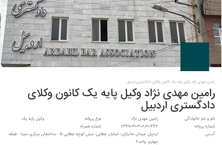 تصویر احراز هویت شده وکیل رامین مهدی نژاد را مشاهده کنید :
