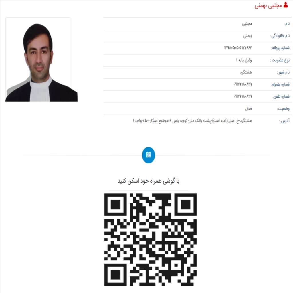 مجتبی بهمنی وکیل پایه یک دادگستری معرفی کوتاه ⚖: آقای وکیل عضو کانون وکلای البرز ،دارای کارشناسی ارشد حقوق عمومی و بیش از 5 سال سابقه انجام بیش از 200 پرونده حقوقی مختلف در حال حاضر به عنوان یکی از بهترین وکیل هشتگرد وکالت میکنند.